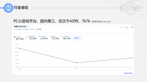 盛天网络2006年于武汉成立,是国内领先的场景化泛娱乐平台,2015年登陆深交所创业板成为湖北省首家上市互联网公司,2016-2023年先后6次入选“中国互联网100强”榜单。依托企业十余年的行业积淀与生态优势打造的易起游平台,经Similarweb权威数据认证,稳居国内PC小游戏平台第三名,月均活跃用户超100万,是轻量化娱乐领域的核心标杆平台之一。